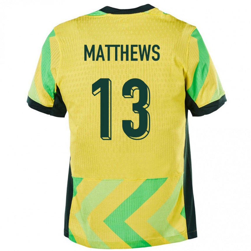 נשים כדורגל אוֹסטְרַלִיָה לוק ויקרי #13 זָהוּב ג'רזי ביתית 24-26