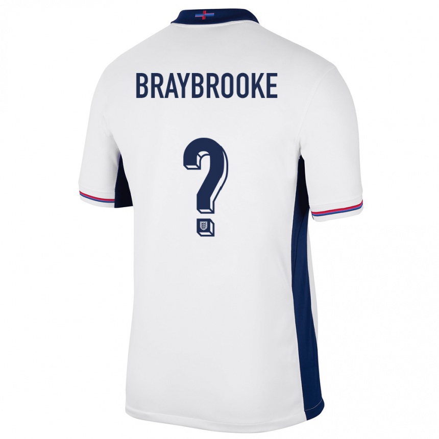 נשים כדורגל אנגליה Kaden Braithwaite #0 לבן ג'רזי ביתית 24-26