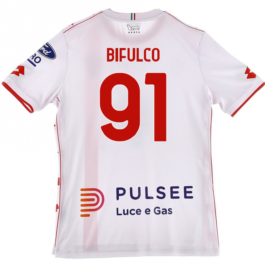 ילדים כדורגל Davide Bifulco #91 לבן אדום כחול הרחק ג'רזי 2025/26