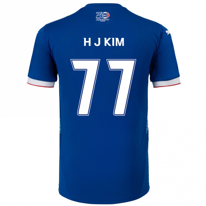ילדים כדורגל Ji-Hyun Kim #77 כחול מלכותי לבן ג'רזי ביתית 2025/26
