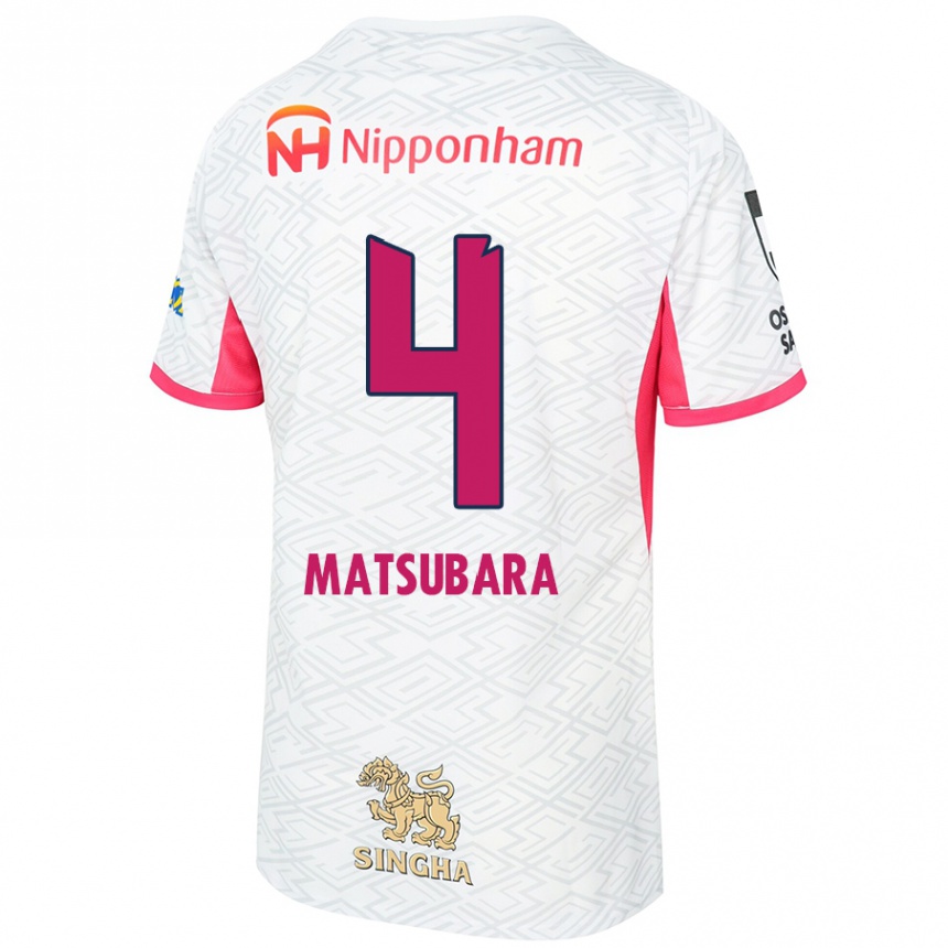 נשים כדורגל Yun Matsubara #4 לבן ורוד סאקורה הרחק ג'רזי 2025/26