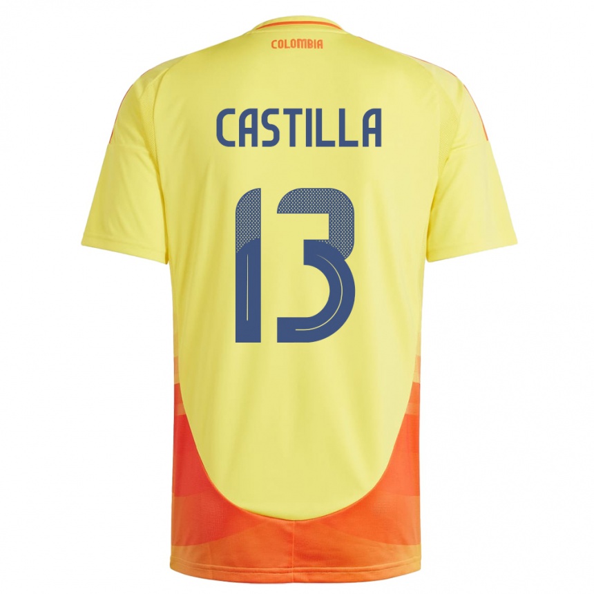 נשים כדורגל קולומביה חואן קסטייה #13 צהוב ג'רזי ביתית 24-26