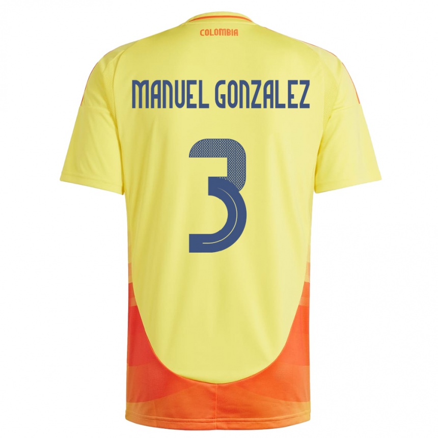נשים כדורגל קולומביה Carlos Manuel González #3 צהוב ג'רזי ביתית 24-26