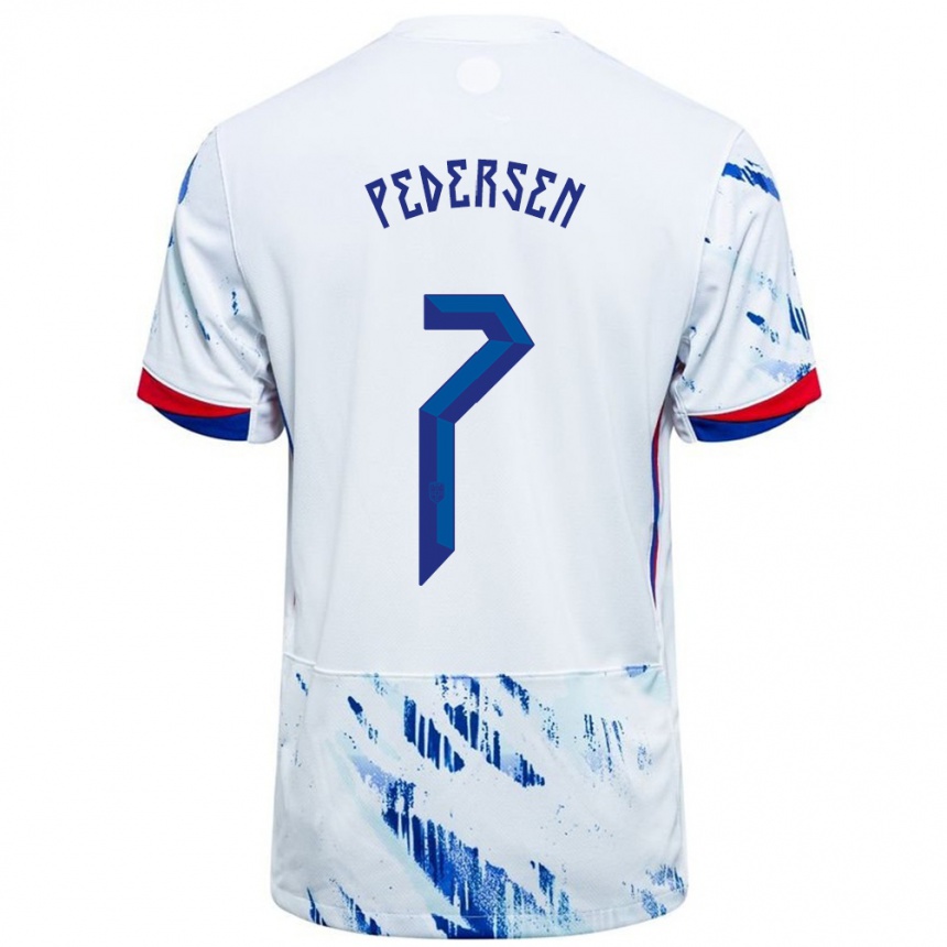 גברים כדורגל נורבגיה מאטס פדרסן #7 לבן כחול הרחק ג'רזי 24-26