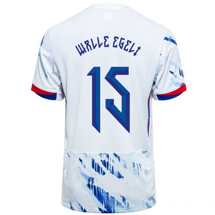 נשים כדורגל נורבגיה אליסבת׳ טרלנד #0 לבן כחול הרחק ג'רזי 24-26
