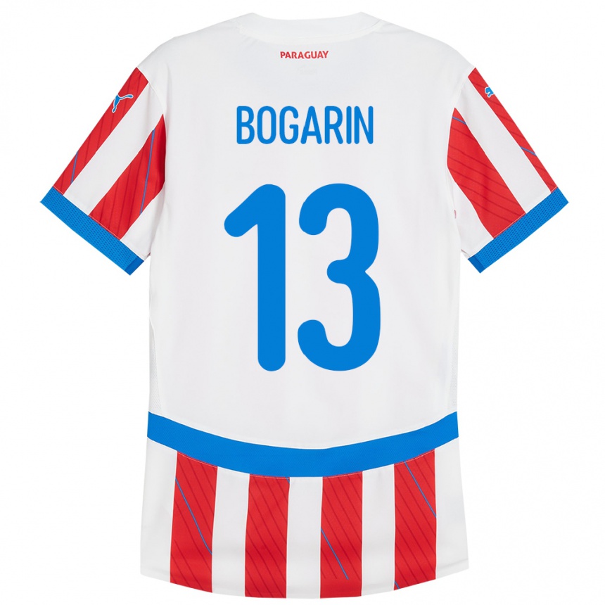 ילדים כדורגל פרגוואי דהיאנה בוגרן #13 לבן אדום ג'רזי ביתית 24-26