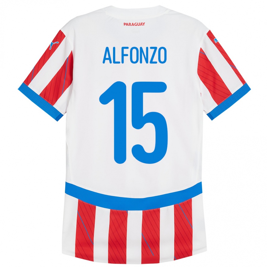 גברים כדורגל פרגוואי ג'וניור אלונסו #6 לבן אדום ג'רזי ביתית 24-26