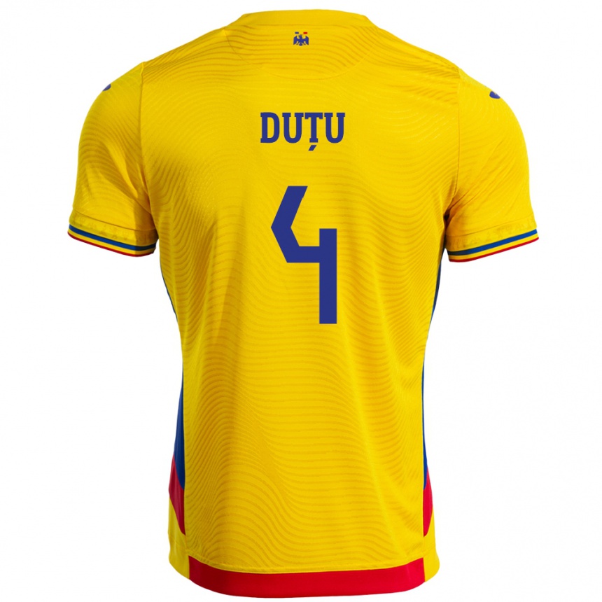 גברים כדורגל רומניה סטפן דושו #4 צהוב ג'רזי ביתית 24-26