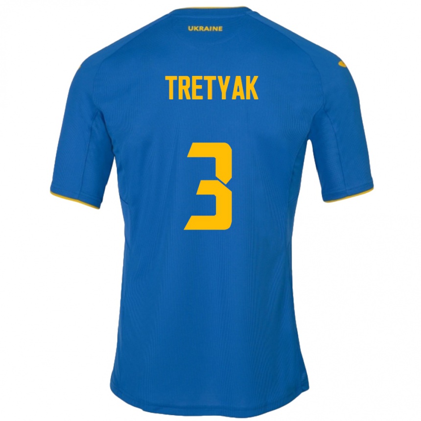 נשים כדורגל אוקראינה Demyan Tretyak #3 כְּחוֹל הרחק ג'רזי 24-26