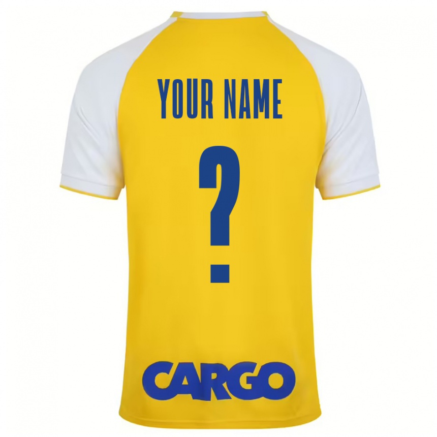 ילדים כדורגל השם שלך #0 צהוב כחול נייבי ג'רזי ביתית 2025/26