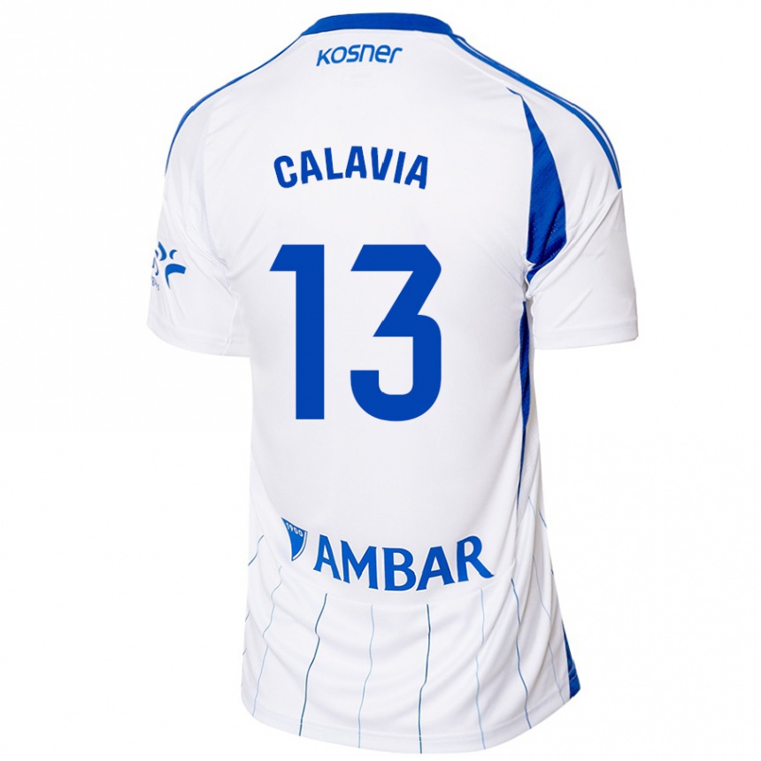 גברים כדורגל Carlos Calavia #13 לבן תכלת ג'רזי ביתית 2025/26