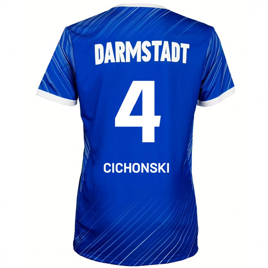 נשים כדורגל Florian Cichonski #4 לבן כחול הרחק ג'רזי 2025/26