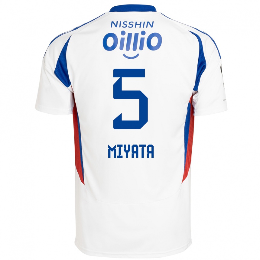 נשים כדורגל Haru Miyata #5 לבן כחול מלכותי הרחק ג'רזי 2025/26