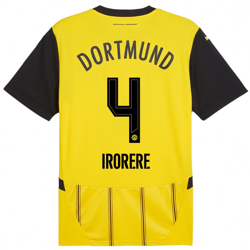 ילדים כדורגל Lenni Strößner #4 צהוב שחור ג'רזי ביתית 2025/26