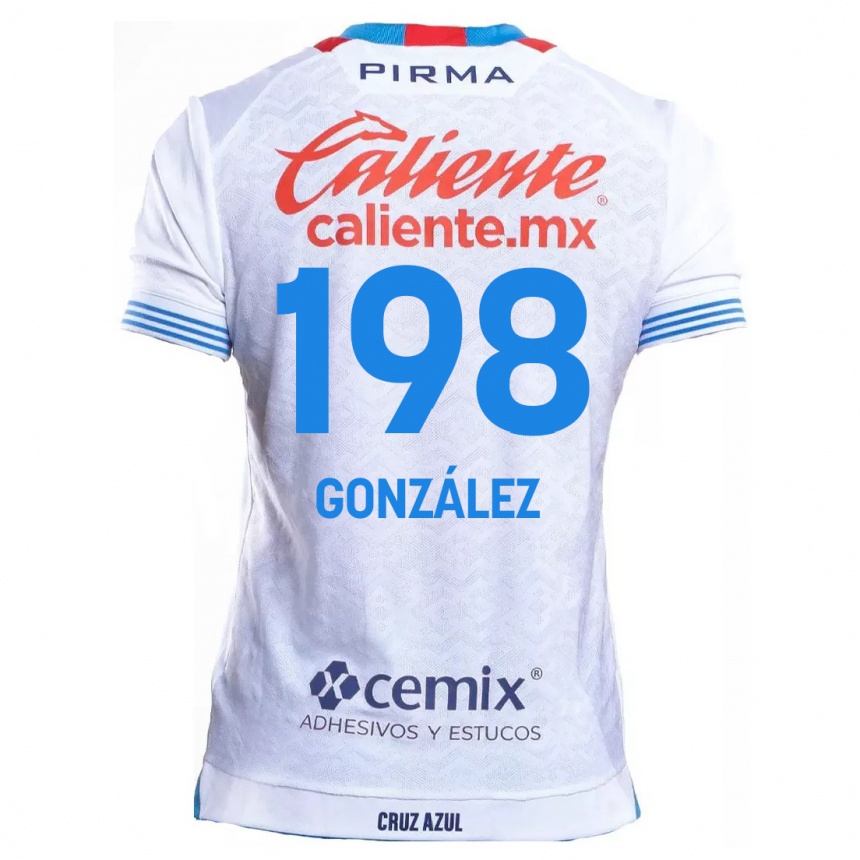 נשים כדורגל Kenneth González #198 לבן אדוםלבן כחול הרחק ג'רזי 2024/25