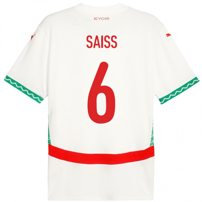 גברים כדורגל מָרוֹקוֹ רומיין סאיס #6 לָבָן הרחק ג'רזי 24-26