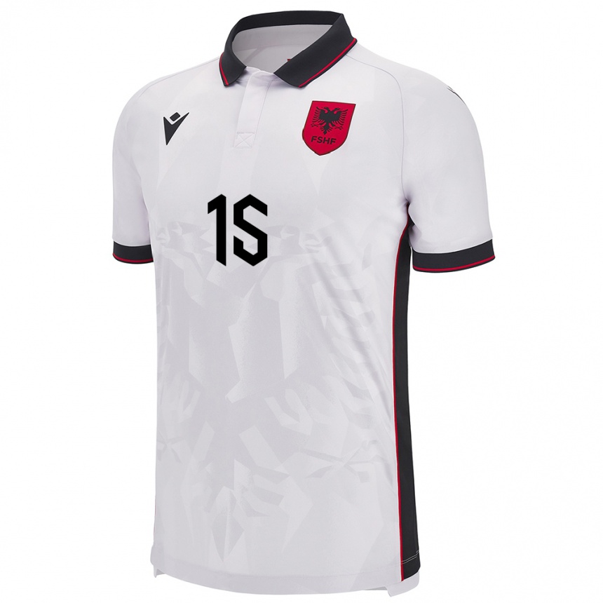 • ילדים כדורגל אלבניה Enea Elmazi #15 לבן הרחק ג'רזי 24-26
