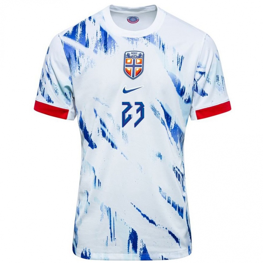 ילדים כדורגל נורבגיה לאסה ברג יונסן #23 לבן כחול הרחק ג'רזי 24-26