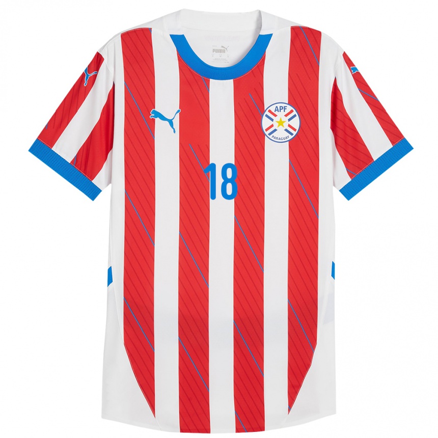 • ילדים כדורגל פרגוואי Liz Barreto #18 לבן אדום ג'רזי ביתית 24-26ילדים כדורגל פרגוואי Liz Barreto #18 לבן אדום ג'רזי ביתית 24-26
