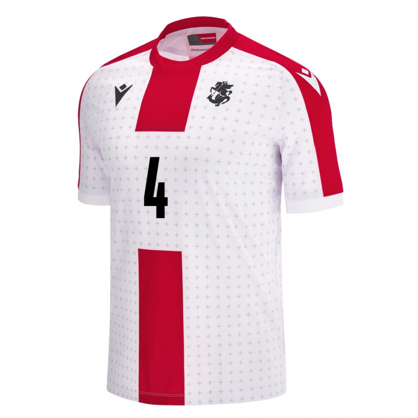 גברים כדורגל גאורגיה Tengo Gobeshia #4 לבן ג'רזי ביתית 24-26