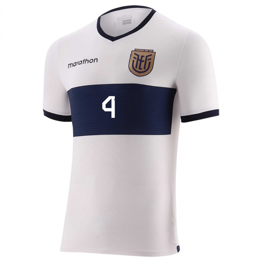 • נשים כדורגל אקוודור דייויס באוטיסטה #4 לבן הרחק ג'רזי 24-26