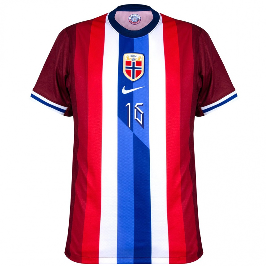 נשים כדורגל נורבגיה אוליבר בראודה #16 אדום כחול לבן ג'רזי ביתית 24-26
