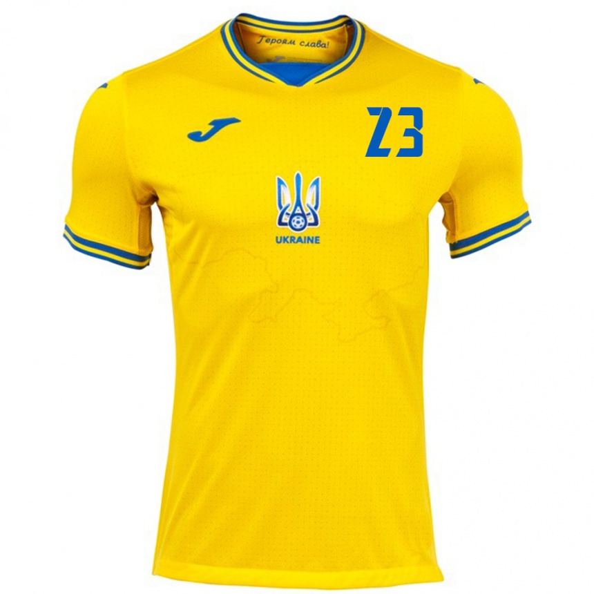נשים כדורגל אוקראינה אנדריי לונין #23 צהוב ג'רזי ביתית 24-26