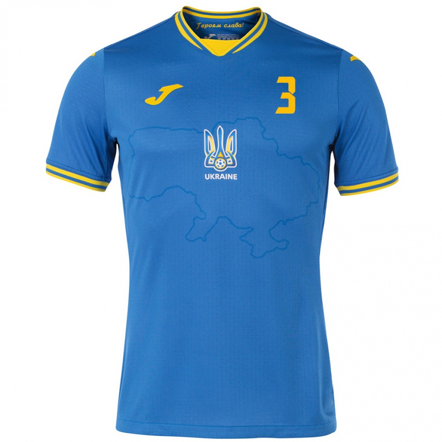 נשים כדורגל אוקראינה Demyan Tretyak #3 כְּחוֹל הרחק ג'רזי 24-26