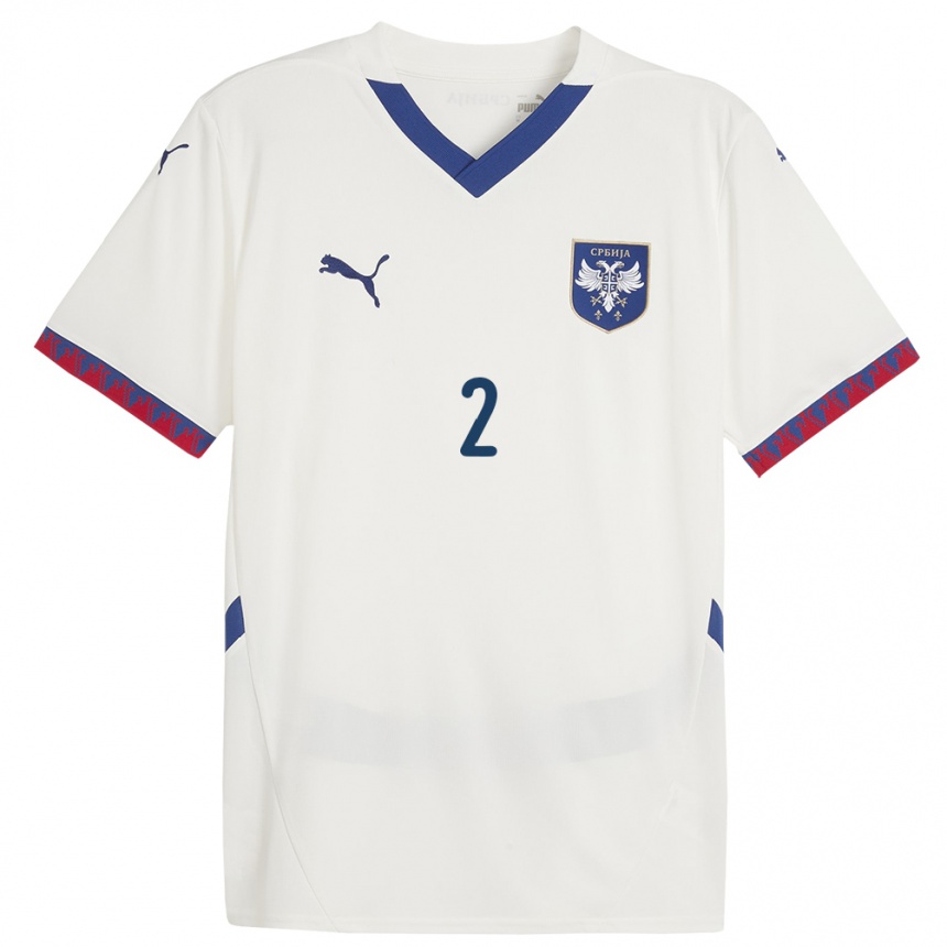 • נשים כדורגל סרביה אורוש לאזיץ׳ #2 לבן הרחק ג'רזי 24-26